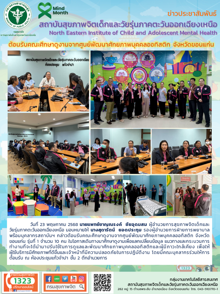 ต้อนรับคณะศึกษาดูงานจากศูนย์พัฒนาศักยภาพบุคคลออทิสติก จังหวัดขอนแก่น Friday May 23rd, 2025Friday May 23rd, 2025admin