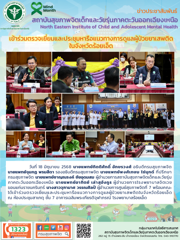 เข้าร่วมตรวจเยี่ยมและประชุมหารือแนวทางการดูแลผู้ป่วยยาเสพติดในจังหวัดร้อยเอ็ด Thursday June 19th, 2025Thursday June 19th, 2025admin