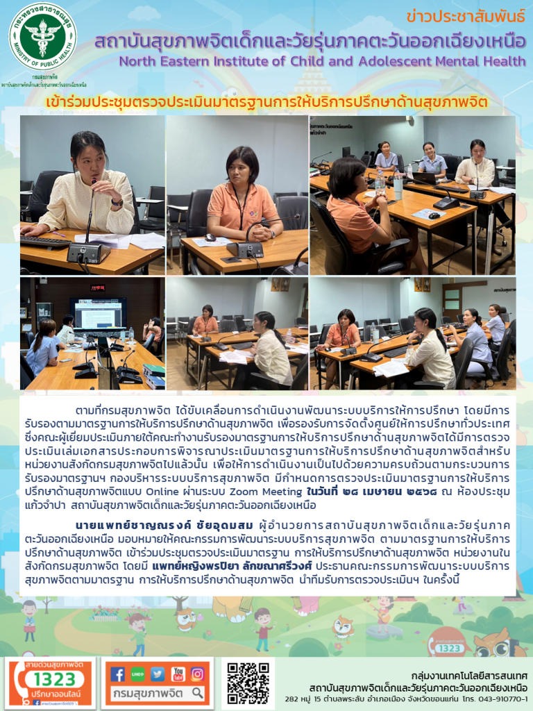 เข้าร่วมประชุมตรวจประเมินมาตรฐานการให้บริการปรึกษาด้านสุขภาพจิต Tuesday April 29th, 2025Tuesday April 29th, 2025admin