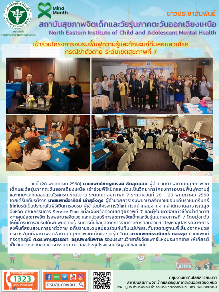 เข้าร่วมโครงการอบรมฟื้นฟูความรู้และทักษะแก่ทีมสอบสวนโรคกรณีฆ่าตัวตาย ระดับเขตสุขภาพที่ 7 Wednesday May 28th, 2025Wednesday May 28th, 2025admin