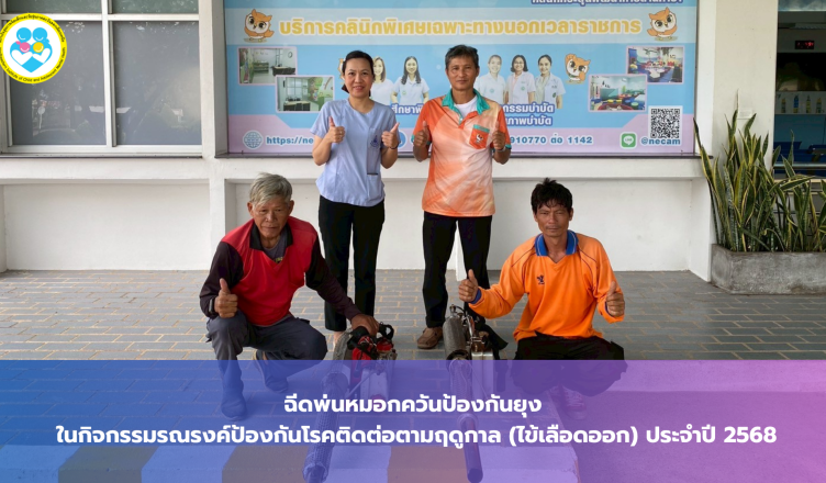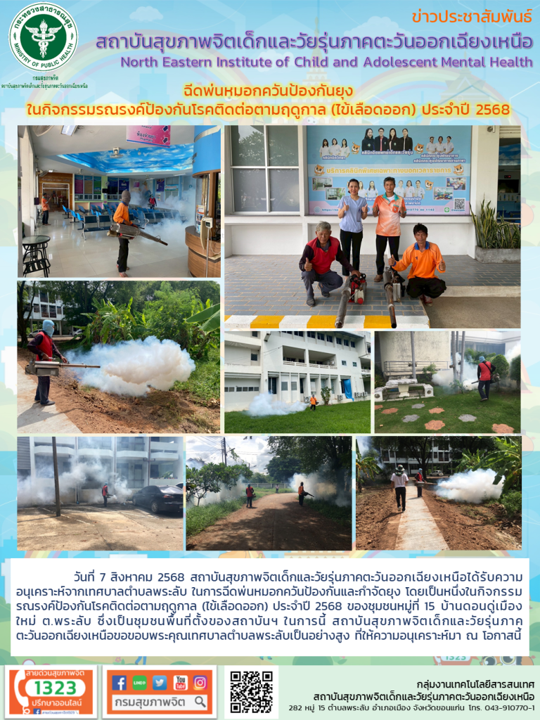 ฉีดพ่นหมอกควันป้องกันยุง ในกิจกรรมรณรงค์ป้องกันโรคติดต่อตามฤดูกาล (ไข้เลือดออก) ประจำปี 2568