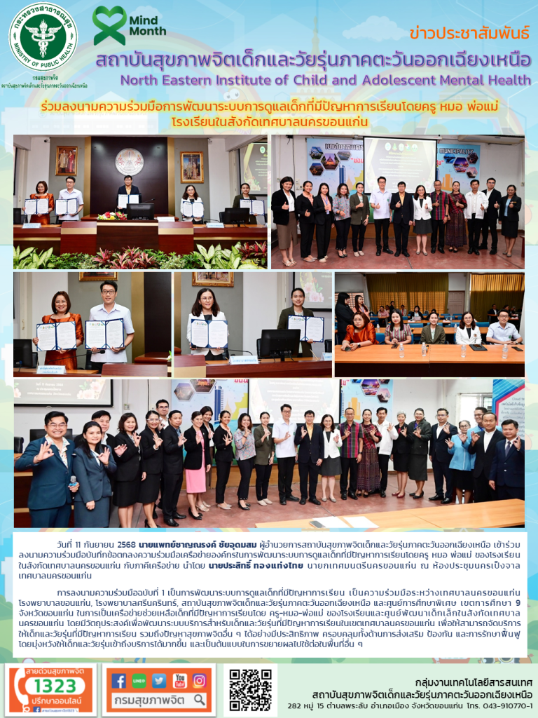 ร่วมลงนามความร่วมมือการพัฒนาระบบการดูแลเด็กที่มีปัญหาการเรียนโดยครู หมอ พ่อแม่ โรงเรียนในสังกัดเทศบาลนครขอนแก่น