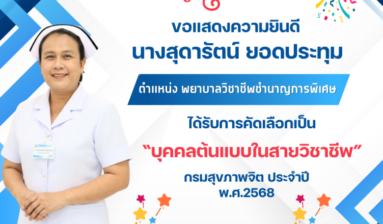 สถาบันสุขภาพจิตเด็กและวัยรุ่นภาคตะวันออกเฉียงเหนือ ขอแสดงความยินดีกับ นางสุดารัตน์ ยอดประทุม ตำแหน่ง พยาบาลวิชาชีพชำนาญการพิเศษ ในโอกาสได้รับคัดเลือกเป็น “บุคลากรต้นแบบในสายวิชาชีพ” กรมสุขภาพจิต ประจำปี พ.ศ. 2568 Wednesday March 18th, 2026Wednesday March 18th, 2026admin