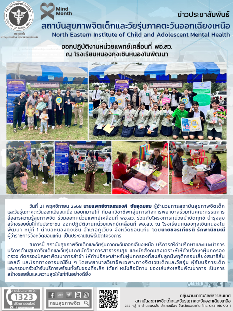ออกปฏิบัติงานหน่วยแพทย์เคลื่อนที่ พอ.สว. ณ โรงเรียนหนองกุงเซินหนองโนพัฒนา Friday November 21st, 2025Friday November 21st, 2025admin
