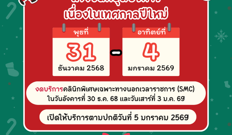 แจ้งวันหยุดเนื่องในเทศกาลปีใหม่