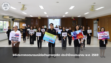 พิธีประกาศเจตนารมณ์ต่อต้านการทุจริต ประจำปีงบประมาณ พ.ศ. 2569 Thursday December 25th, 2025Thursday December 25th, 2025admin