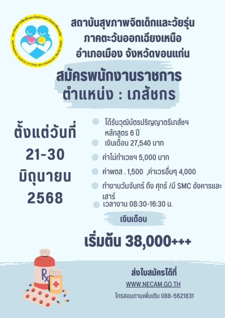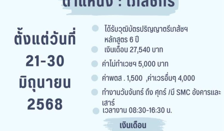 ประกาศรับสมัครบุคคลเพื่อเลือกสรรเป็นพนักงานราชการทั่วไป ในตำแหน่ง เภสัชกร จำนวน 1 ตำแหน่ง