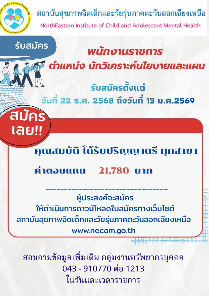 ประกาศ เรื่อง รับสมัครบุคคลเพื่อเลือกสรรเป็นพนักงานราชการทั่วไป ในตำแหน่ง นักวิเคราะห์นโยบายและแผน จำนวน 1 ตำแหน่ง Thursday December 18th, 2025Thursday December 18th, 2025admin hrrecruit-181268ดาวน์โหลด job-app-181268ดาวน์โหลด card-enter-181268ดาวน์โหลด