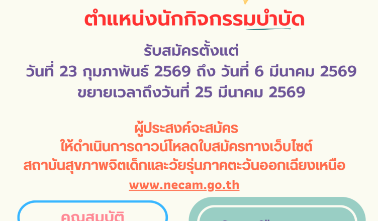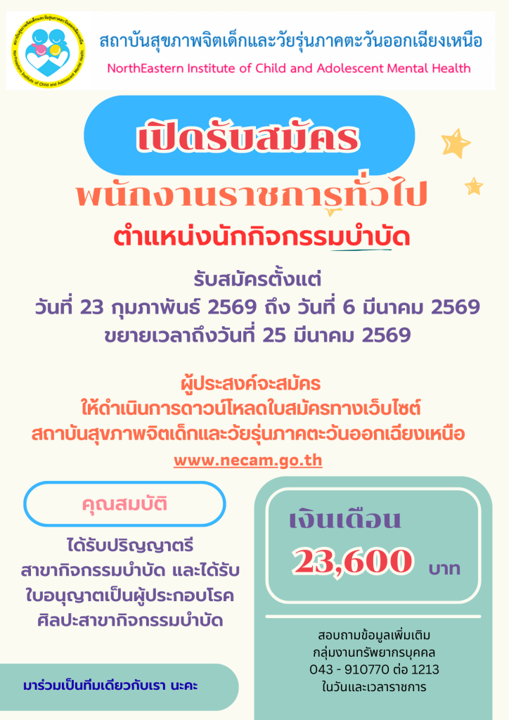 ประกาศ ขยายเวลารับสมัครบุคคลเพื่อเลือกสรรเป็นพนักงานราชการทั่วไป ในตำแหน่งนักกิจกรรมบำบัด Monday March 9th, 2026Monday March 9th, 2026admin prhr090369-2ดาวน์โหลด